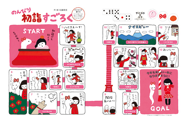 おしゃれでかわいい年賀状 2013 アクリル絵の具, キャラクター, 書籍・雑誌・新聞│2012.10 「おしゃれでかわいい年賀状 2013」に、年賀状7点と、巻頭のすごろくが掲載されています。 発行:マイナビ