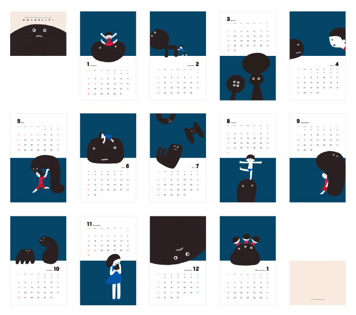 「くろいかみさまとこども」というシリーズのオリジナル作品で2014年のカレンダーを作りました。